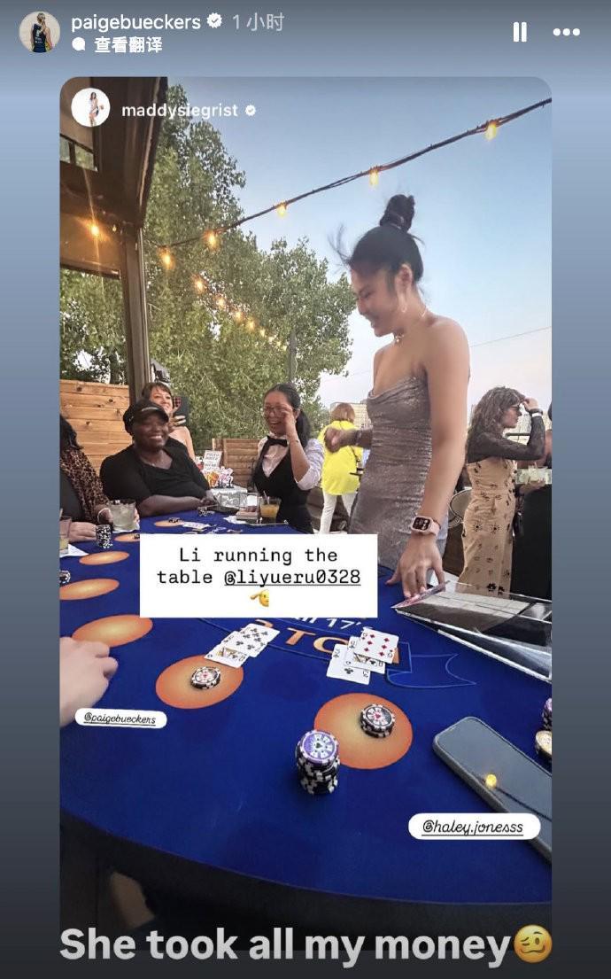 北京时间今日,中国女篮国手李月汝与自己在WNBA达拉斯飞翼队的队友们一同外出游玩,她们一起玩了Blackjack(21点)。